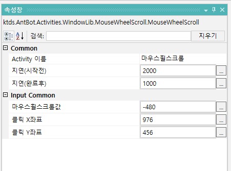 AntBot Studio > Activity > 화면제어 > 마우스 > 마우스휠스크롤
