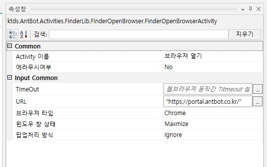 '브라우져 열기' 속성값 설정