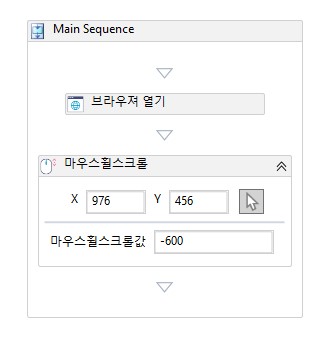 '마우스휠스크롤' 액티비티 설정값 입력