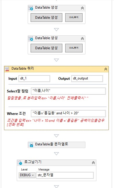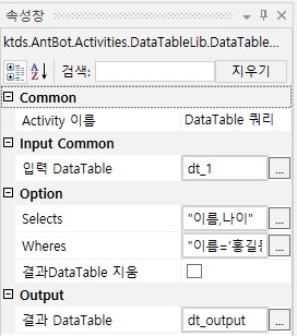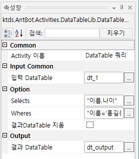 AntBot Studio > Activity > 데이터제어 > 데이터테이블 > 기본 > DataTable 쿼리